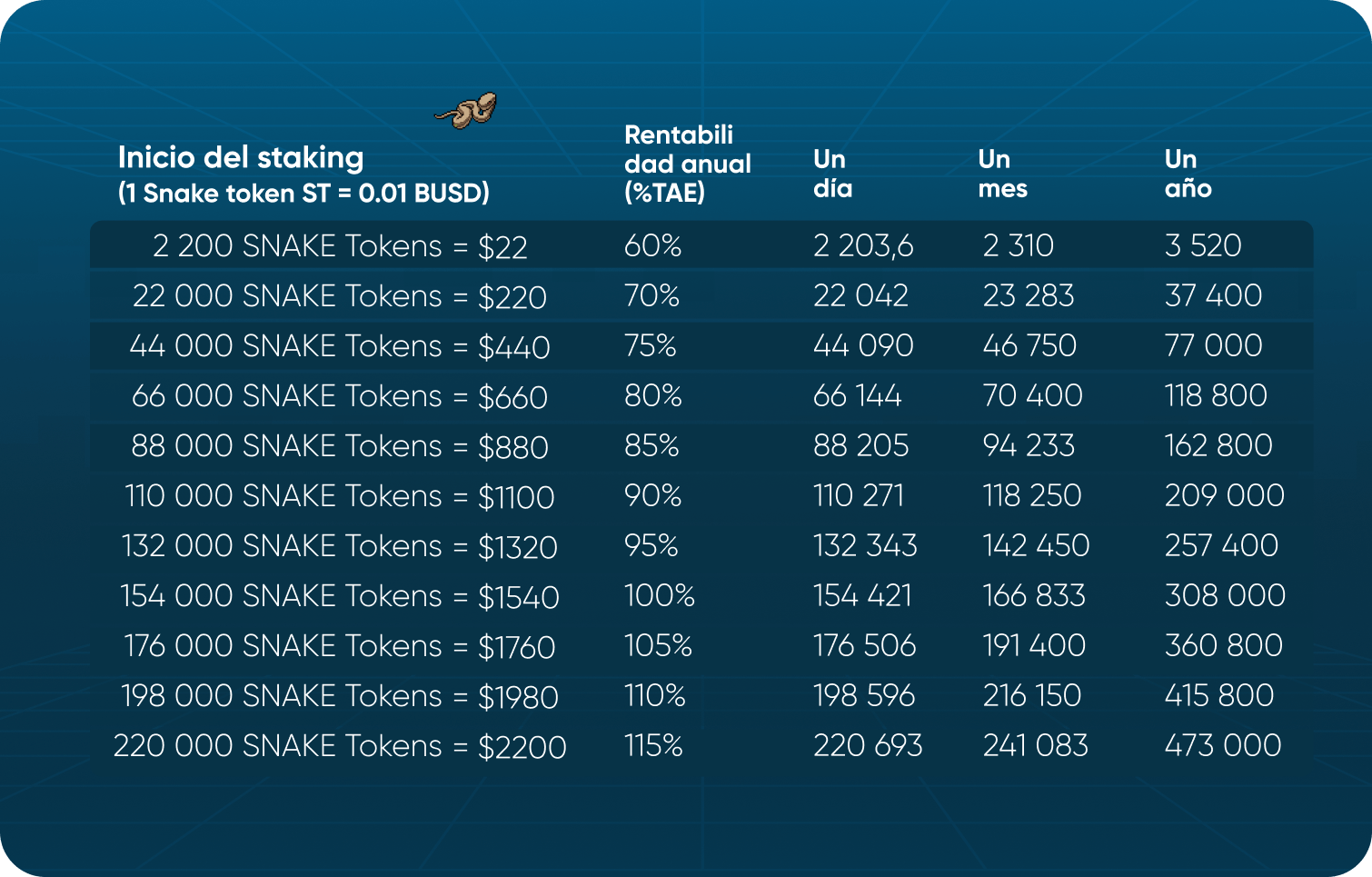 Tüm yeni katılımcılar için SNAKE tokenlerindeki stake ödülü başlangıç miktarı yıllık %60’tır.